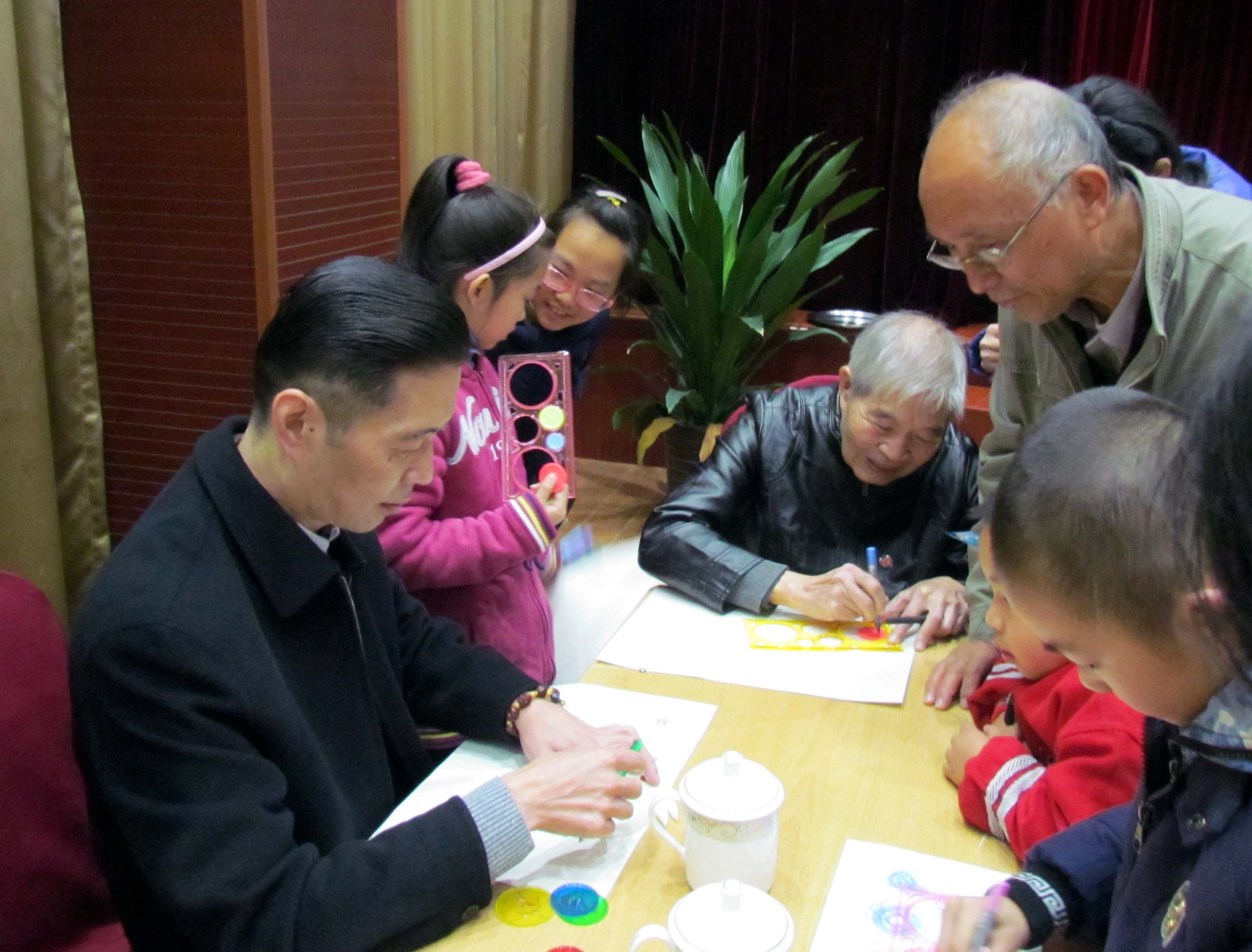 指导孩子们绘图规使用方法公益临汾街道活动现场